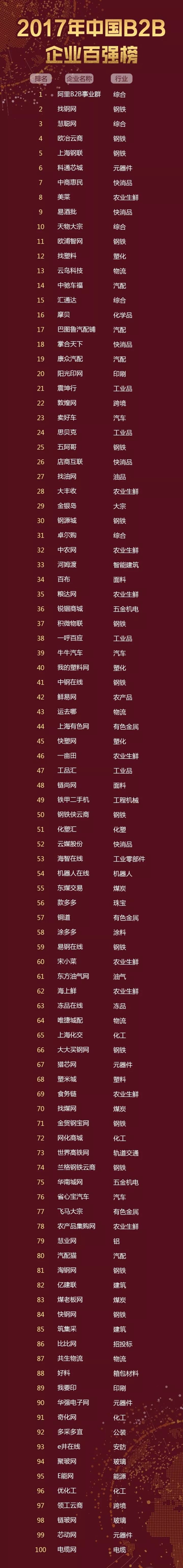 附件:2017年中国B2B企业百强榜&2017年中国B2B百名行业领袖完整名单